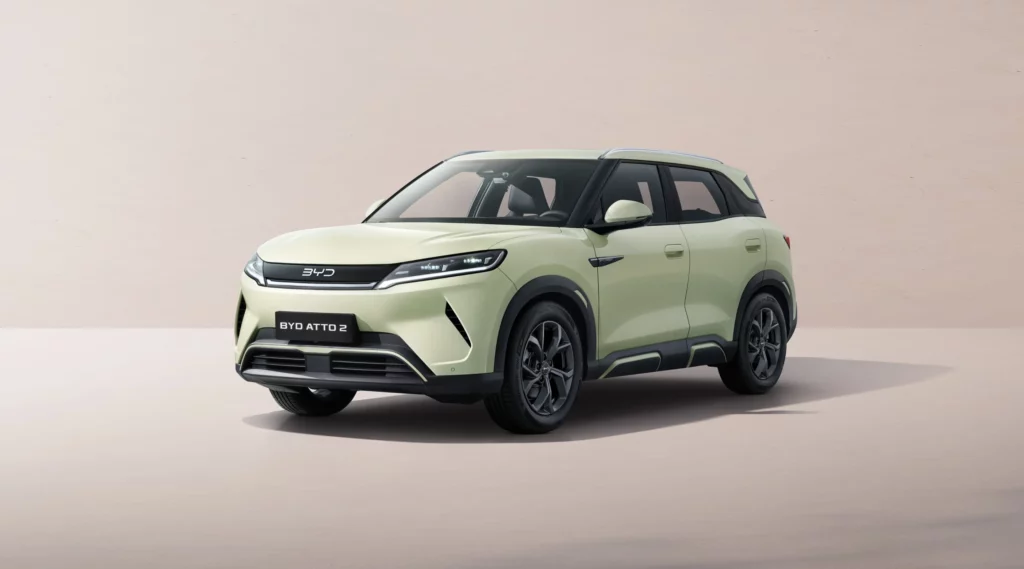 Der Atto 2 ist ein kompaktes Elektro-SUV (B-Segment), das mit einer Länge von ca. 4,31 Metern genau zwischen dem kleineren Dolphin und dem größeren Atto 3 rangiert. Optisch setzt BYD auf das „Dragon Face“-Design: schmale LED-Scheinwerfer, eine robuste SUV-Statur und ein durchgehendes Leuchtenband am Heck. Im Vergleich zum verspielten Interieur des Atto 3 wirkt der Atto 2 innen deutlich aufgeräumter und „europäischer“, ohne dabei auf die markentypischen Gimmicks zu verzichten.